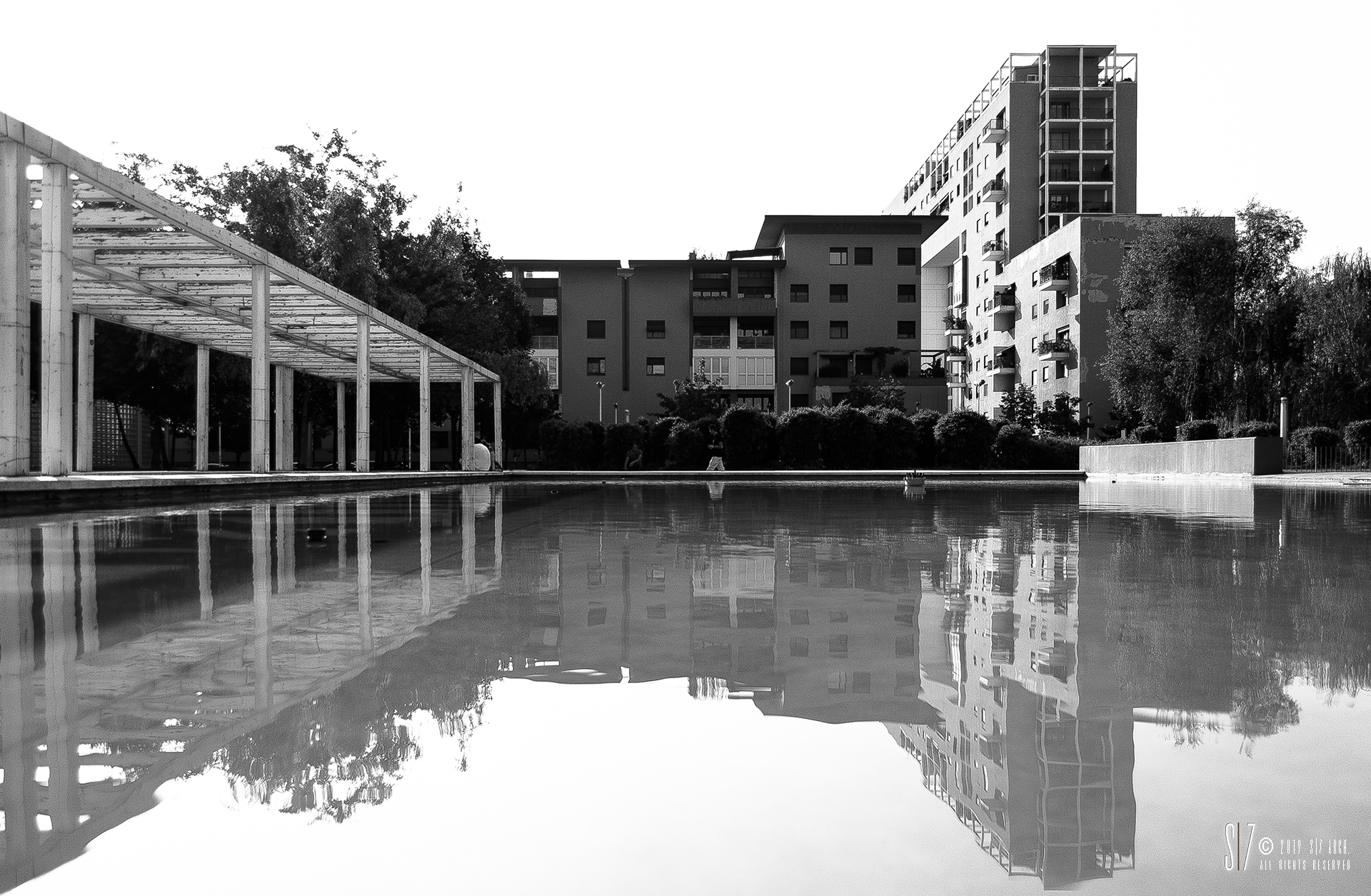 Alcuni fotografi hanno provato così a immortalare poetici panorami durante le ore di crepuscolo; altri hanno impostato il proprio progetto sulle ombre nette provocate dai coronamenti metallici durante le ore calde del giorno; altri ancora, fieri della propria capacità artistica, hanno soffermato lo sguardo su bizzarre prospettive disassate, dimenticando così, quasi senza rendersene conto, le ristrette ma ben definite scelte progettuali dell’architetto Vittorio Gregotti; altri invece avevano già studiato i disegni di Gregotti e compreso la filosofia progettuale dell’architetto stesso, e abilmente sono riusciti a fotografarne le idee.